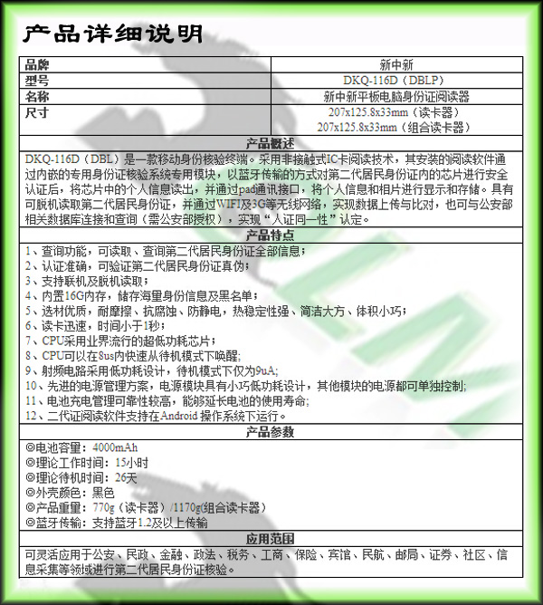 新中新平板身份證閱讀器